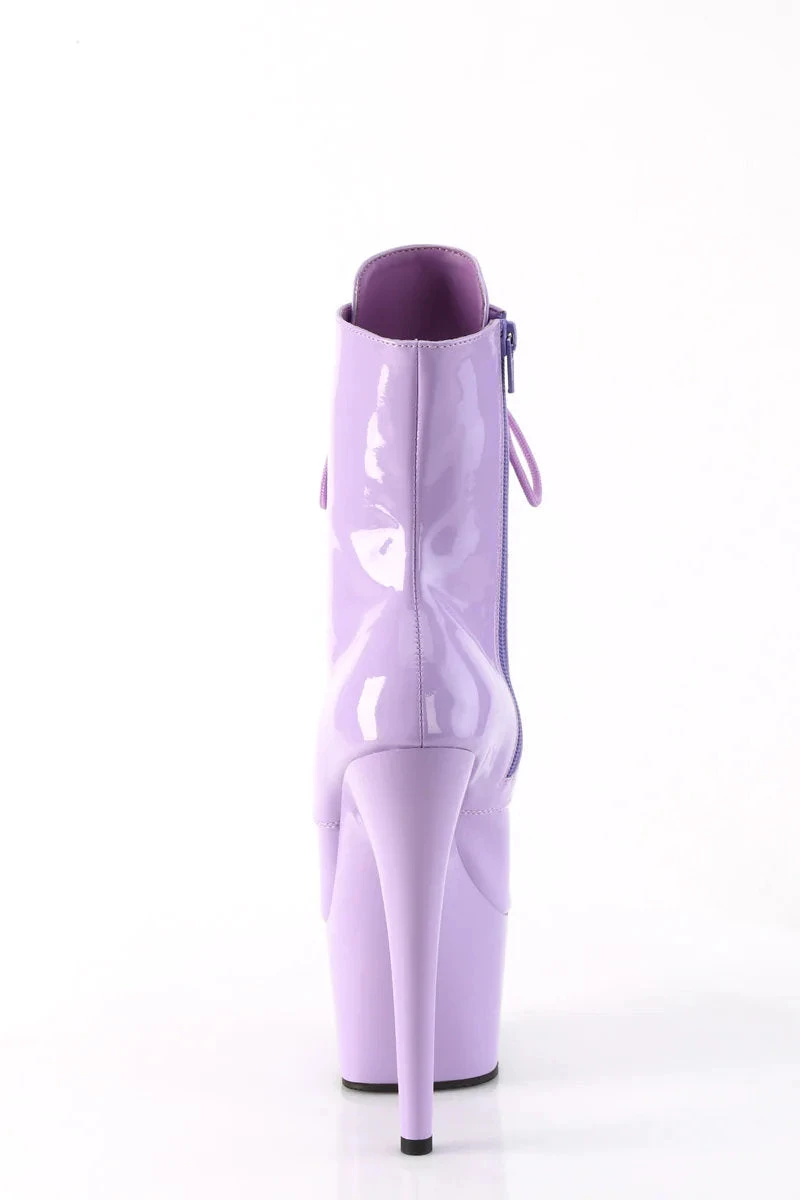 - Patent Lavender Platform, Lace-Up Front Ankle Boot, Inside Zip Closure