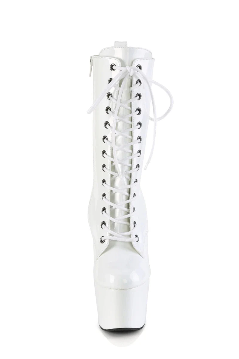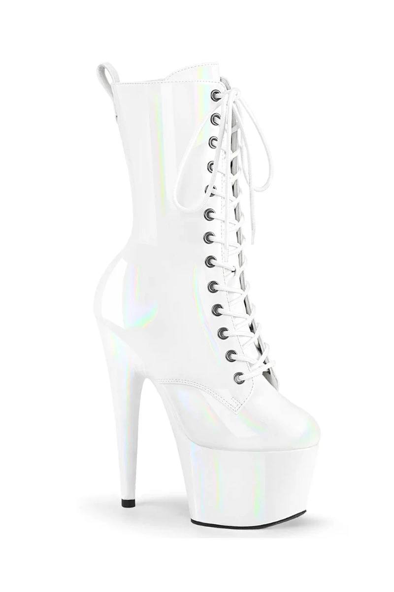 - White Holographic Platform | Lace-Up Front Ankle Boot | Inside Zip Closure