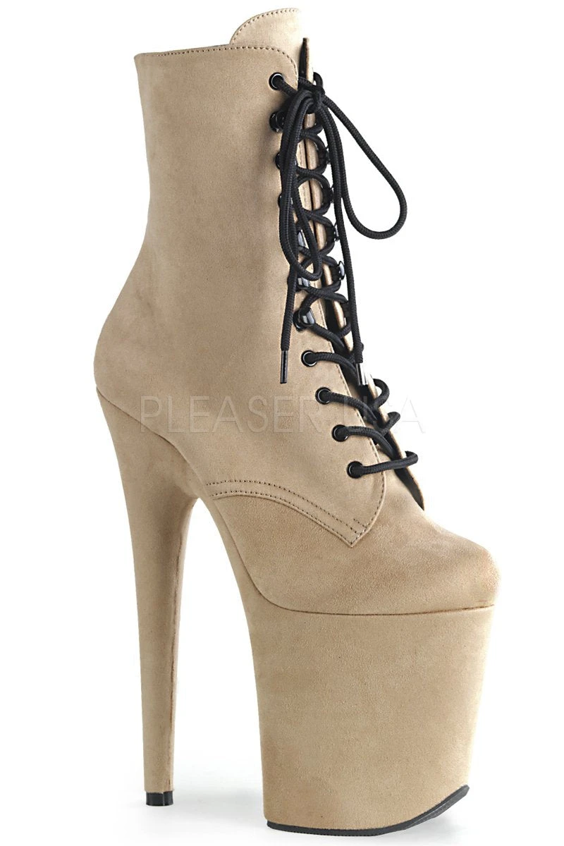 - Nude Platform Lace-Up Front Ankle Boot, Inside Zip Closure