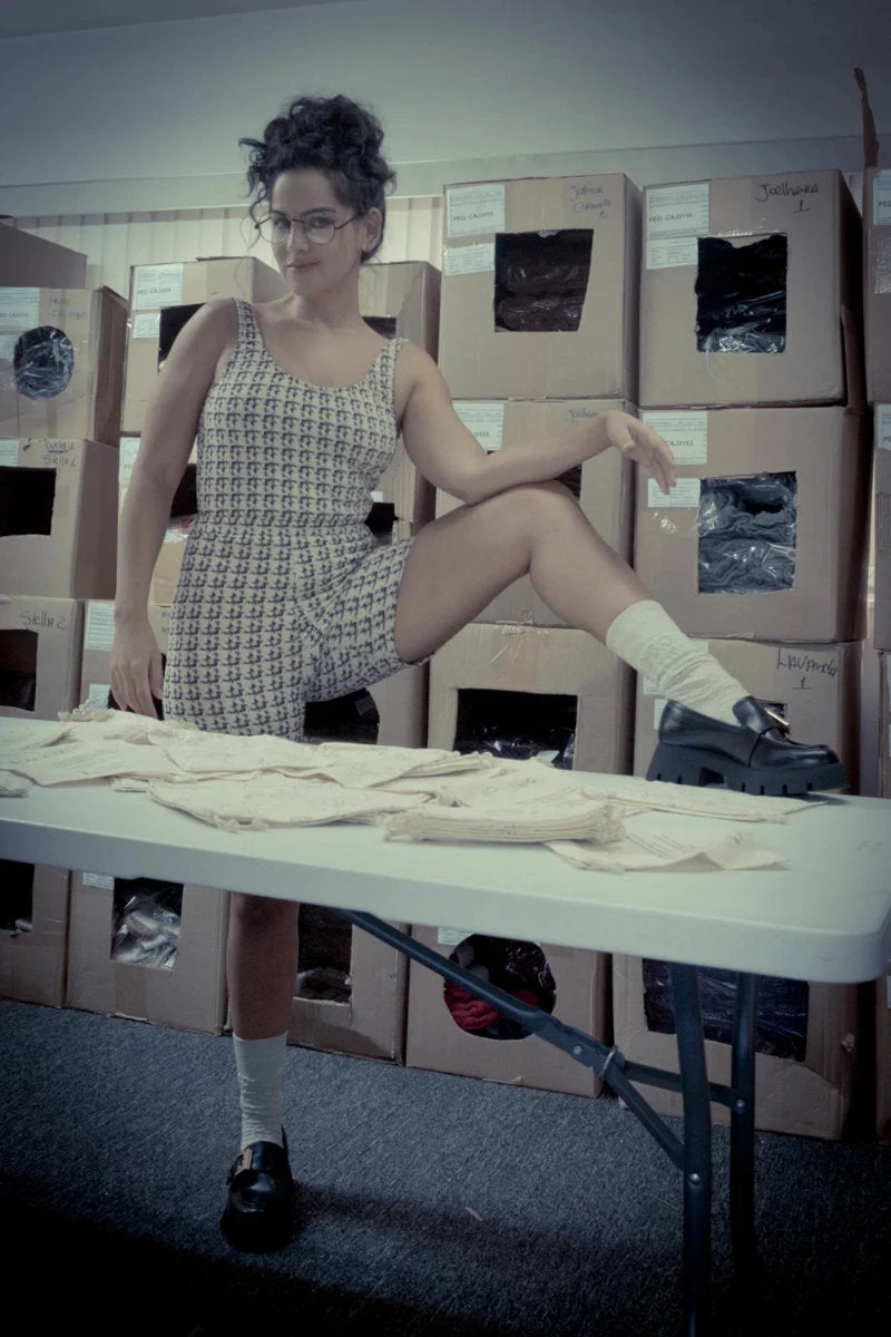 High waist Biker Shorts in Rolling’s super cool tweed fabric. These extra cute, preppy shorts combine comfort with a playful edge.Â